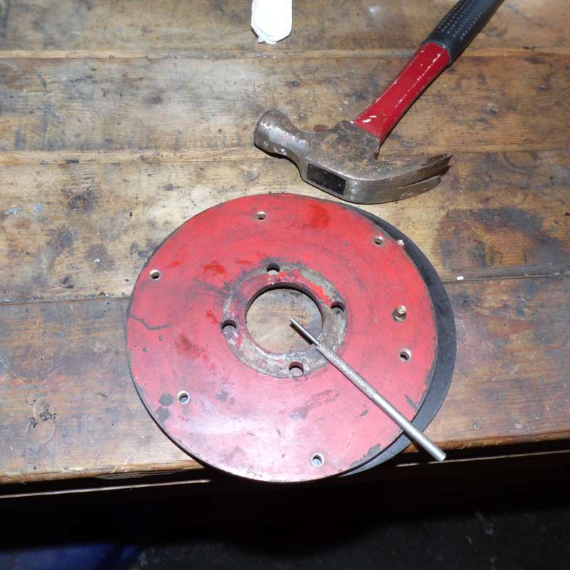After removing the clutch disc drill out the back of the rivets and punch them out to remove the disc from the backing plate.